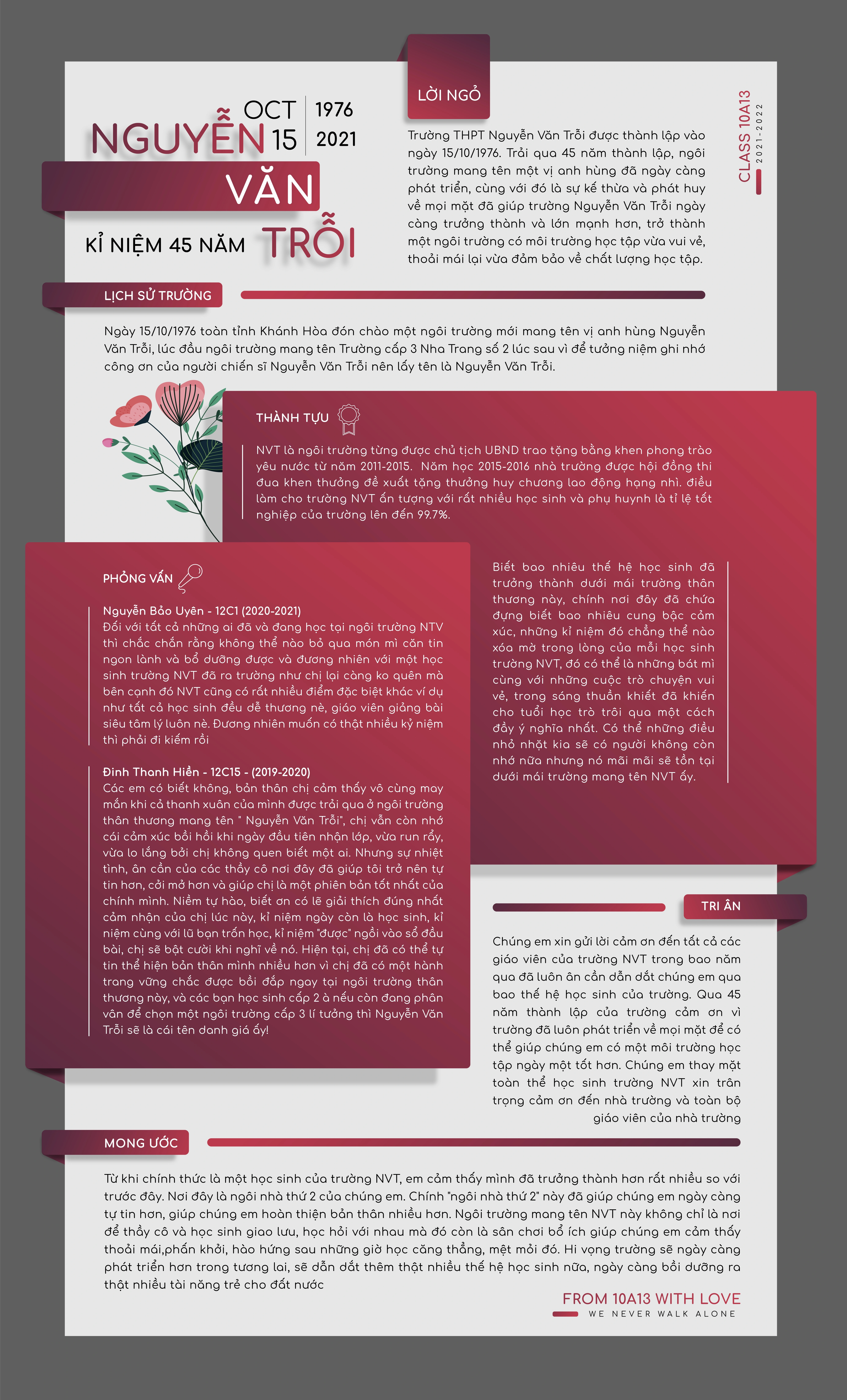 Bài báo tường này được xem như là cột mốc đầu tiên của lớp chúng tớ. Vì khi làm báo tường chung chúng tớ đã hiểu rõ nhau hơn, trở nên đoàn kết hơn và đã để lại rất nhiều ấn tượng trong lòng của mỗi một người chúng tớ. Mọi người có thể xem tại đây